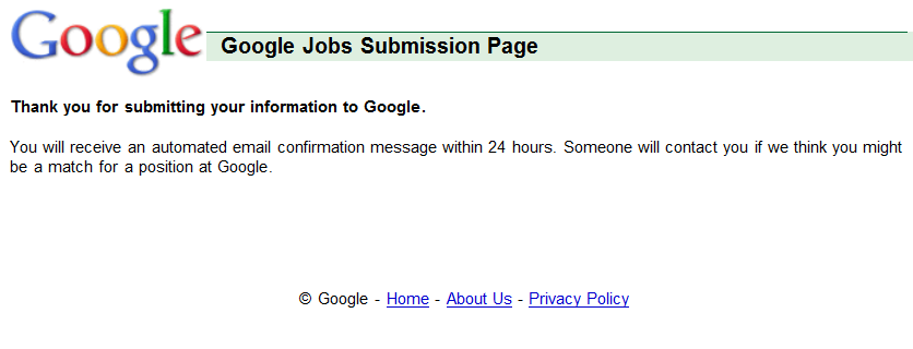 Finally, I applied to Google as well and that was my last application. I was so excited about it! I even saved all the "thank you for application" screens as you can see in Figure 2.