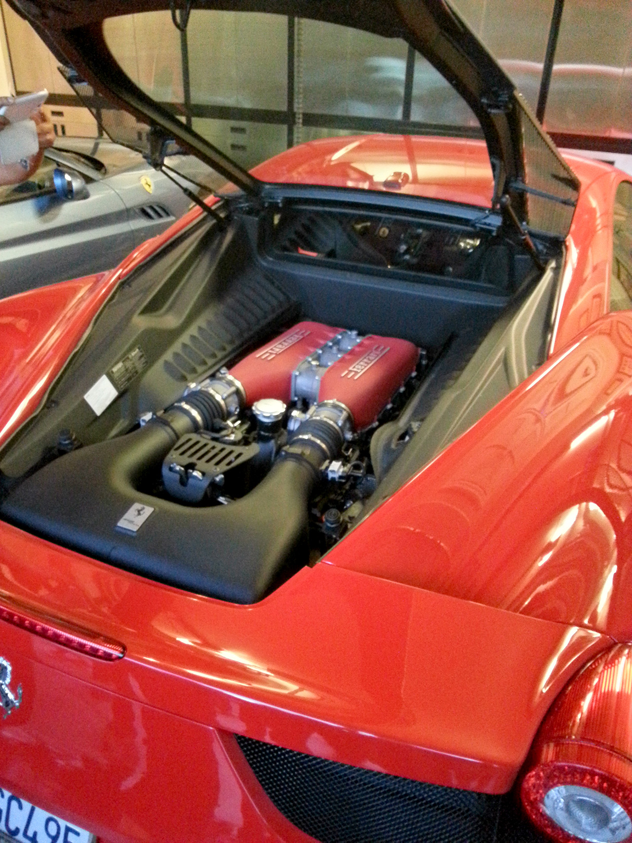 Yeah, his garage has second floor. He made joke that he needs to store his cars somewhere and one floor was not enough. Then he lowered the second floor. There it was. Bright red Ferrari covered by red silk sheet. He uncovered if and jumped in and started it up! Just awesome! Then he offered one female intern to go inside and try it so she did. She seemed quite nervous (and who wouldn't be :).