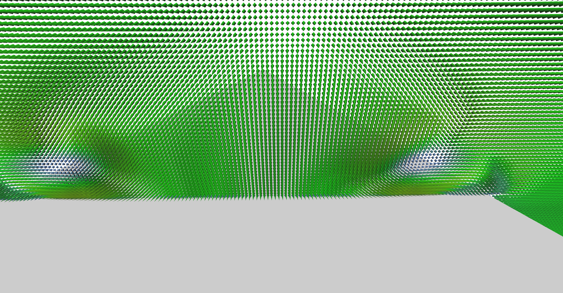 It is possible to set number of glyph lines in plane to very high numbers and create solid wall as shown in Figure 5. This serves as relatively nice visualization of vector magnitudes.