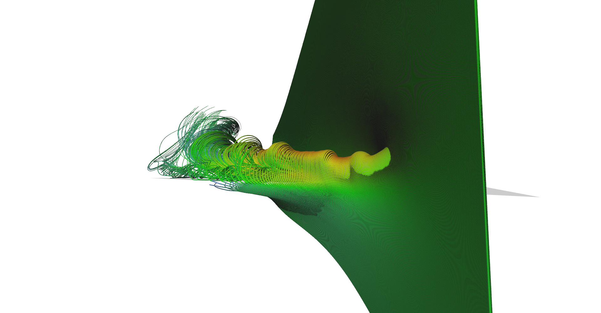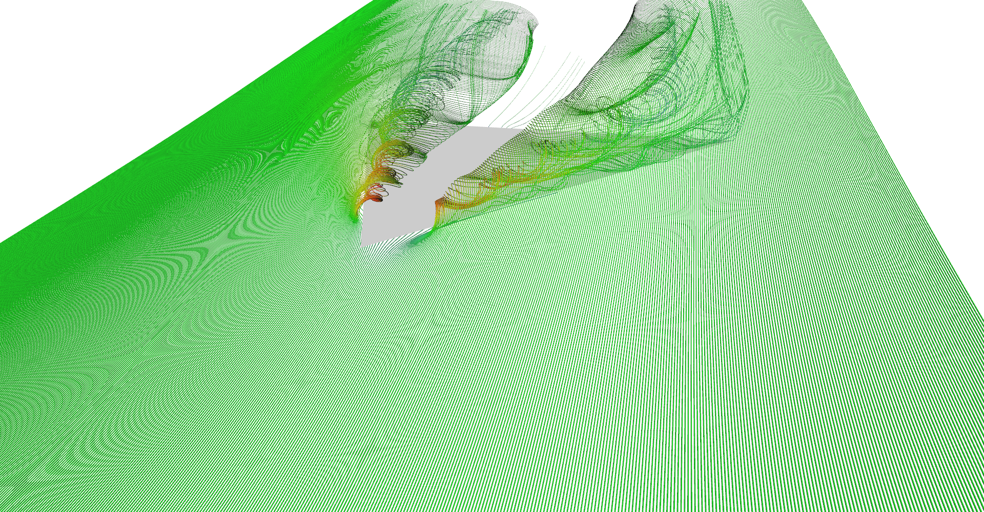 Row of stream-tubes seeded among the wing edge.