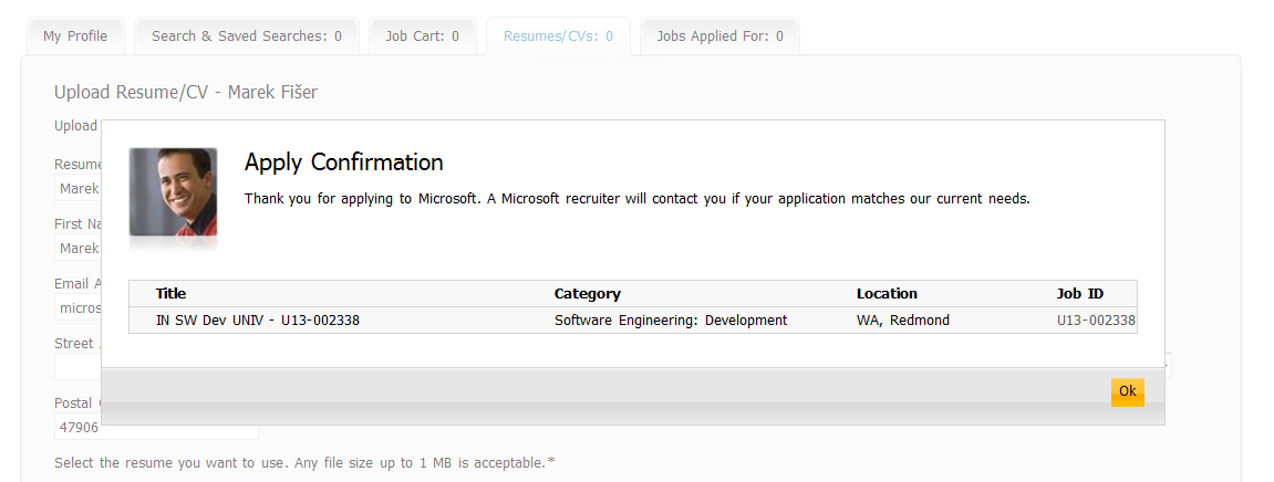First I wanted to apply for Google because it was in my eyes the coolest company to work for. But shortly after opening the application form there was a field for a cover letter. I never wrote a cover letter before and I had no idea what to write there so I skipped the Google application for now. I applied for Microsoft because of my knowledge of C#, for Intel because they do cool stuff and for Apple just because I was curious. None of those companies required a cover letter so the application process was straight forward.