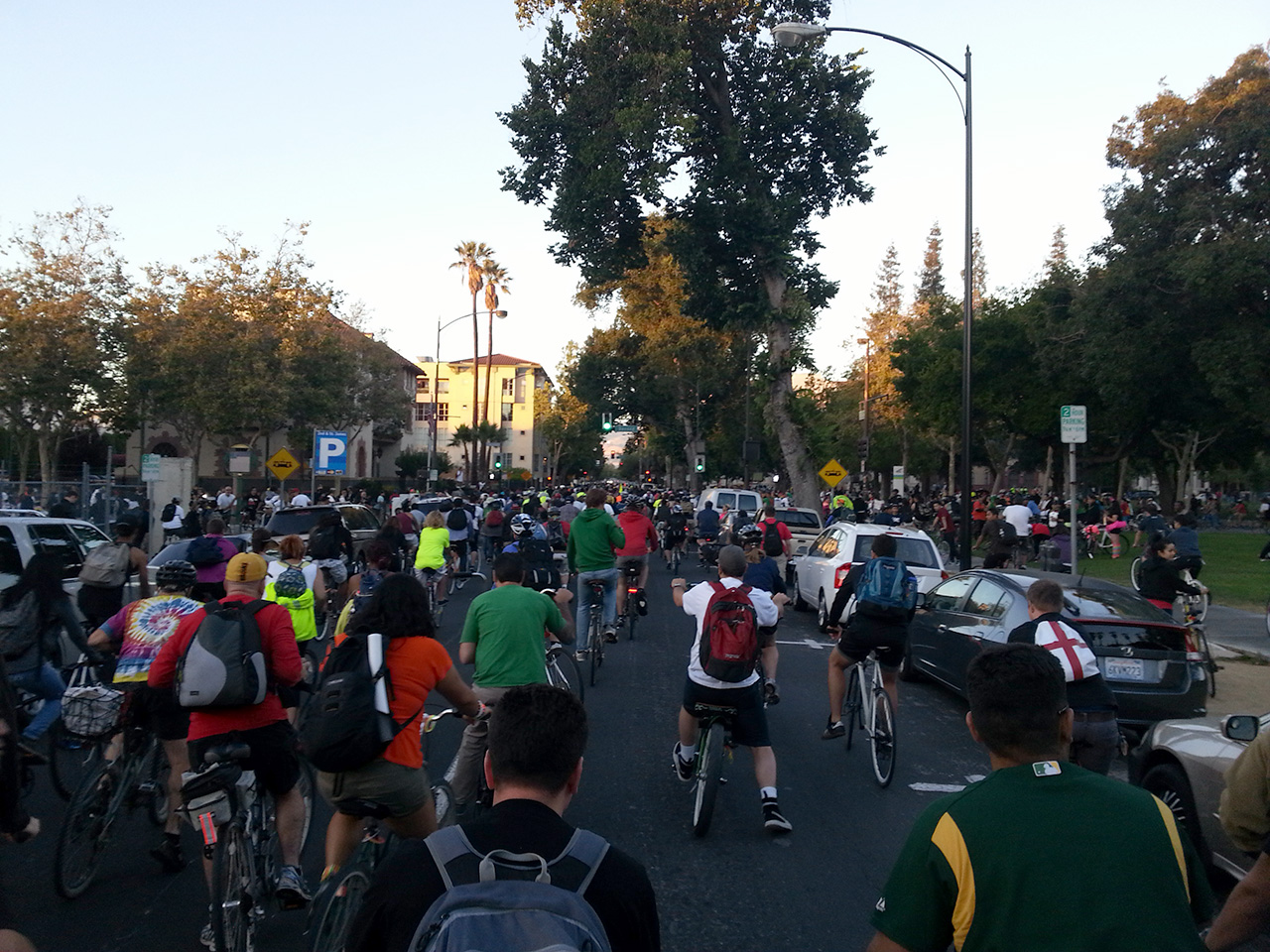 Bike party! Regular event in San Jose where a few thousands bikers march through the city.