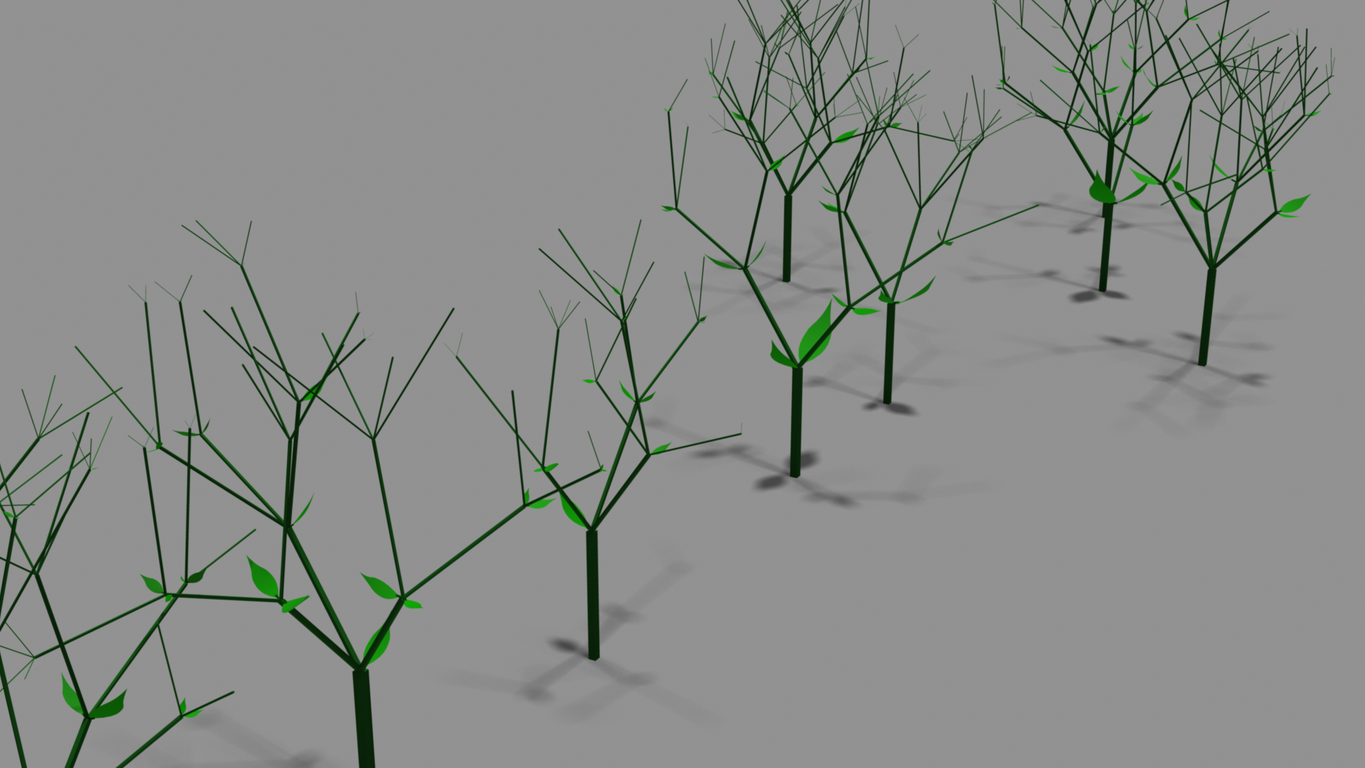 - Result of each iteration of the L-system is exported to 3D model as OBJ and MTL files.