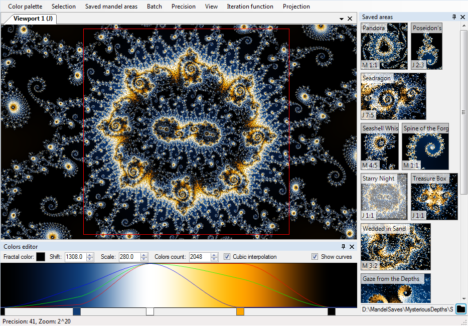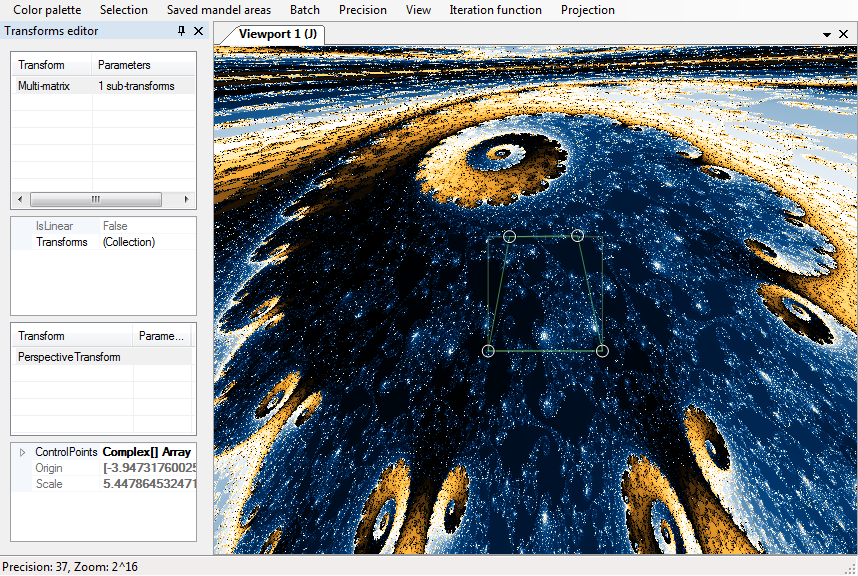 Mamex is a Mandelbrot set rendering library written in C# and supports arbitrary precision (provided by GMP) for infinite zoom. The explorer can visualize Mandelbrot and Julia sets and has many additional features such as interactive color gradient editor, projections support, and batch rendering. Custom anti-aliasing algorithm, sharpening, and color dithering algorithms yields beautiful results.