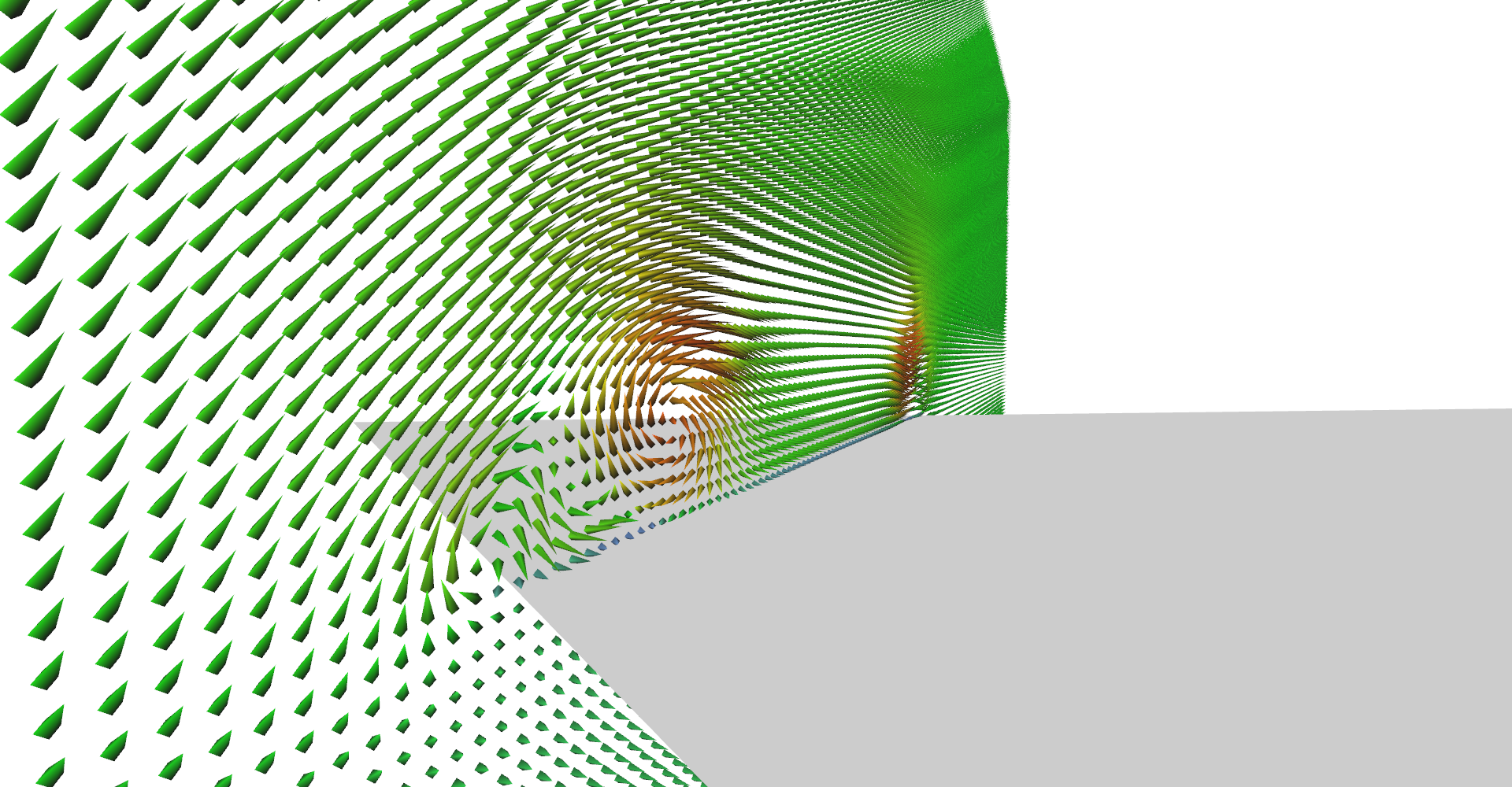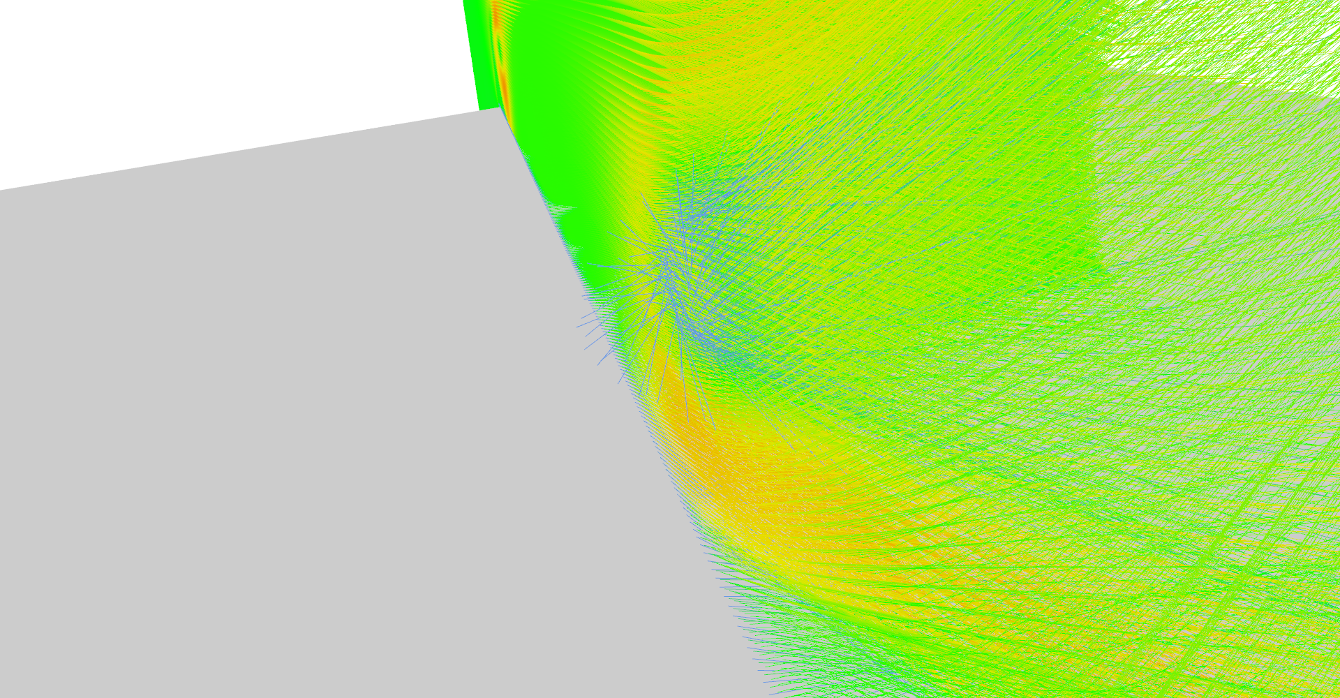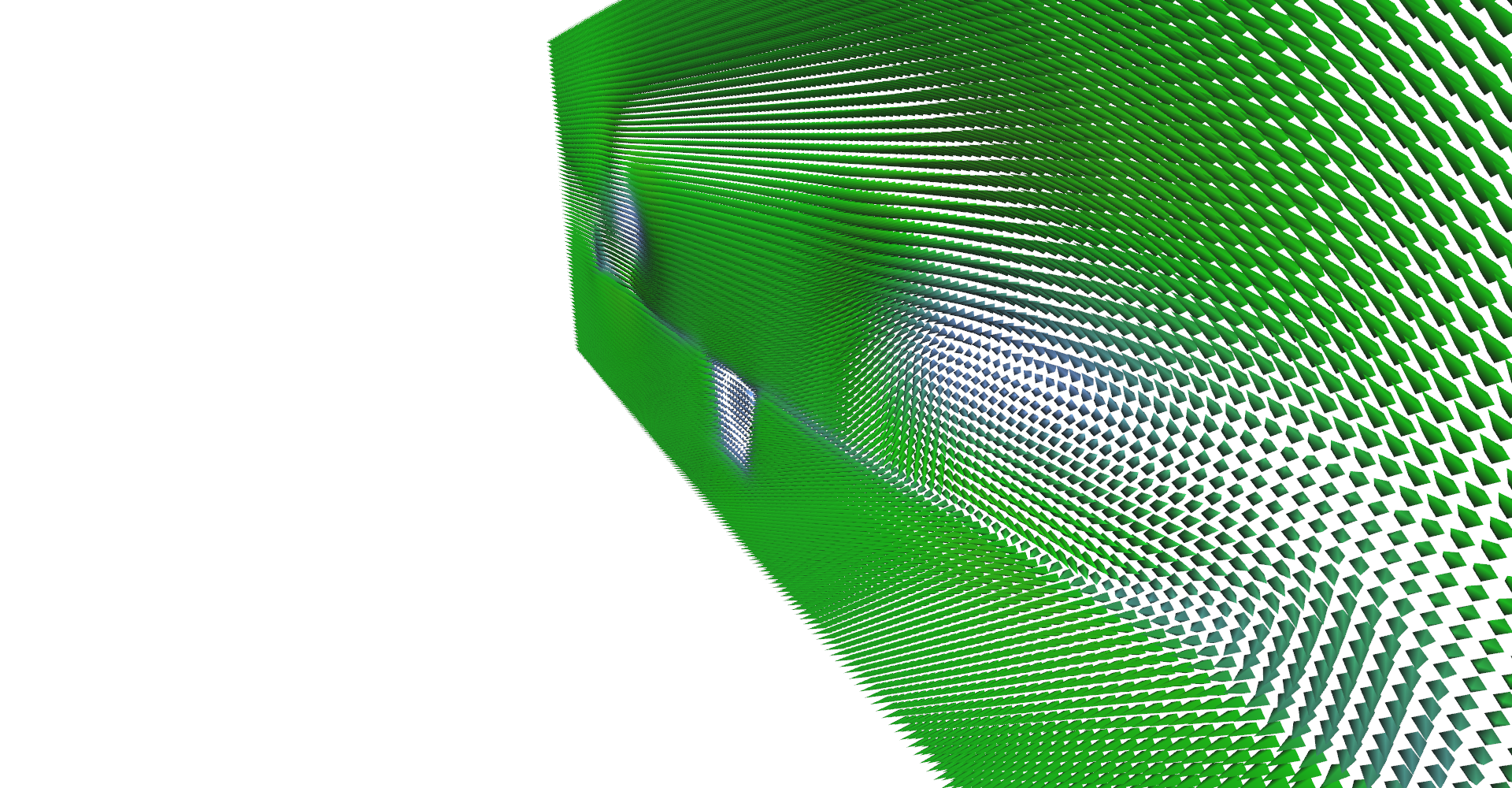 It is possible to set number of glyph lines in plane to very high numbers and create solid wall as shown in Figure 5. This serves as relatively nice visualization of vector magnitudes.