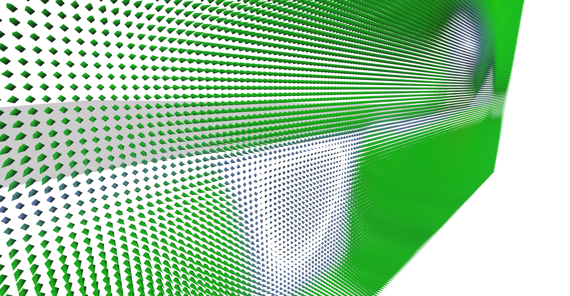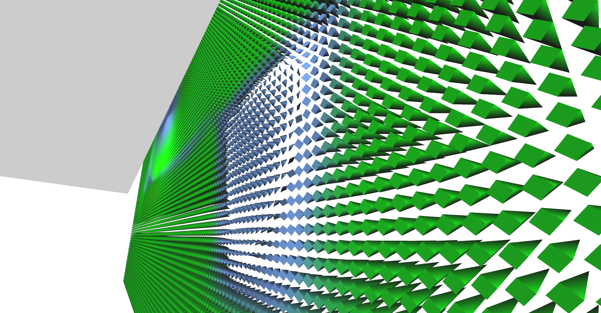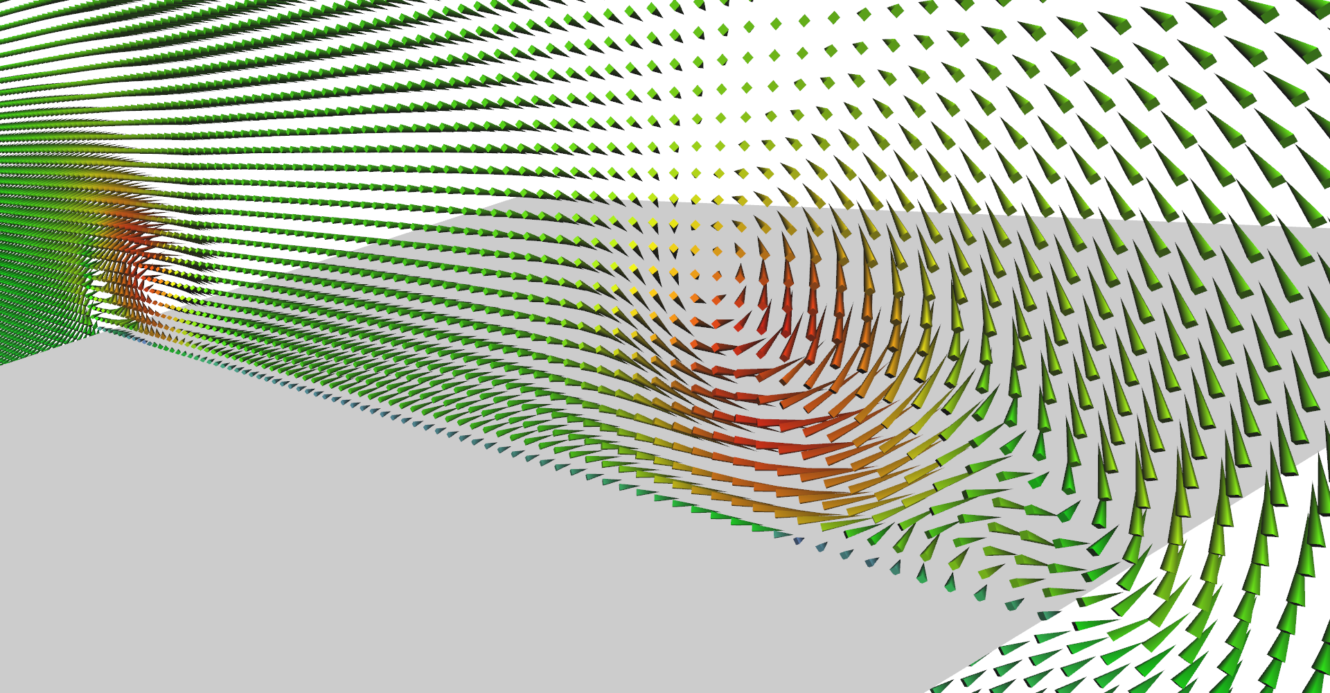 It is possible to set number of glyph lines in plane to very high numbers and create solid wall as shown in Figure 5. This serves as relatively nice visualization of vector magnitudes.