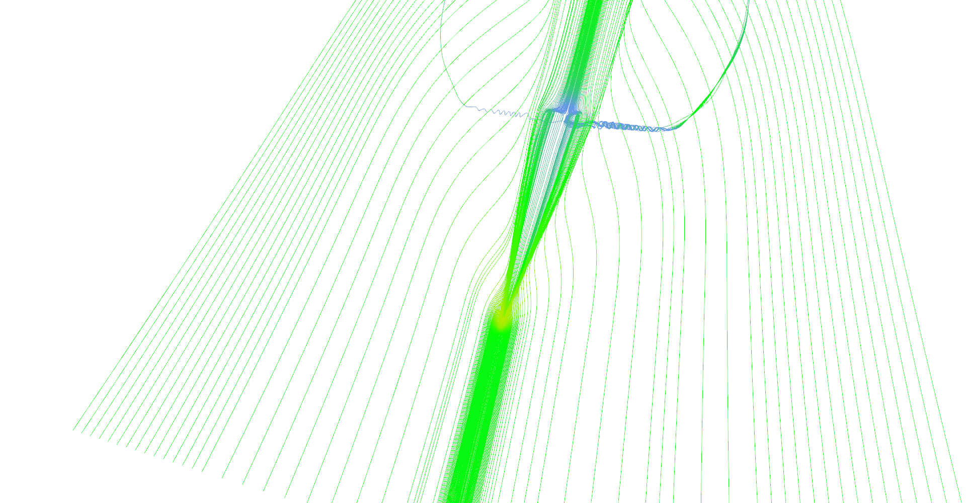 Row of stream-tubes seeded among the wing edge.
