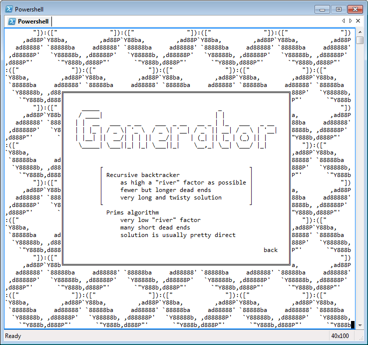 I have also created an editor where you can type text and it gives you your text converted as big ASCII caption. You can find the feature in the main menu under "Extra" item. This class also contains a hit for one of the easter eggs :)